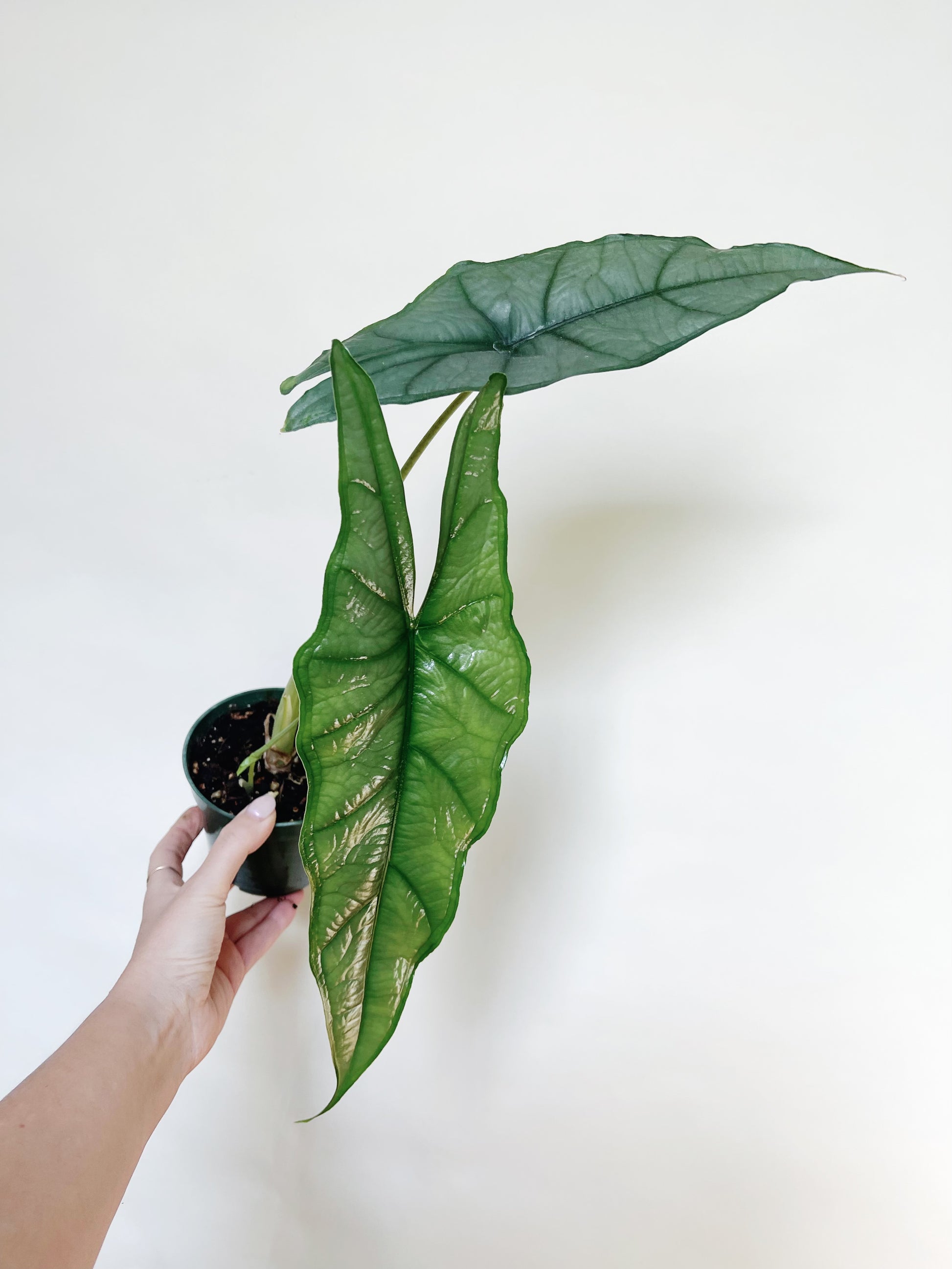 Absolutely fantastic Alocasia with arrowheah-shaped pointy green leaves - this plant got its name for resembling a dragon's head. A unique and hard to find variety will stand out among your plants and is a must have in any collection!
