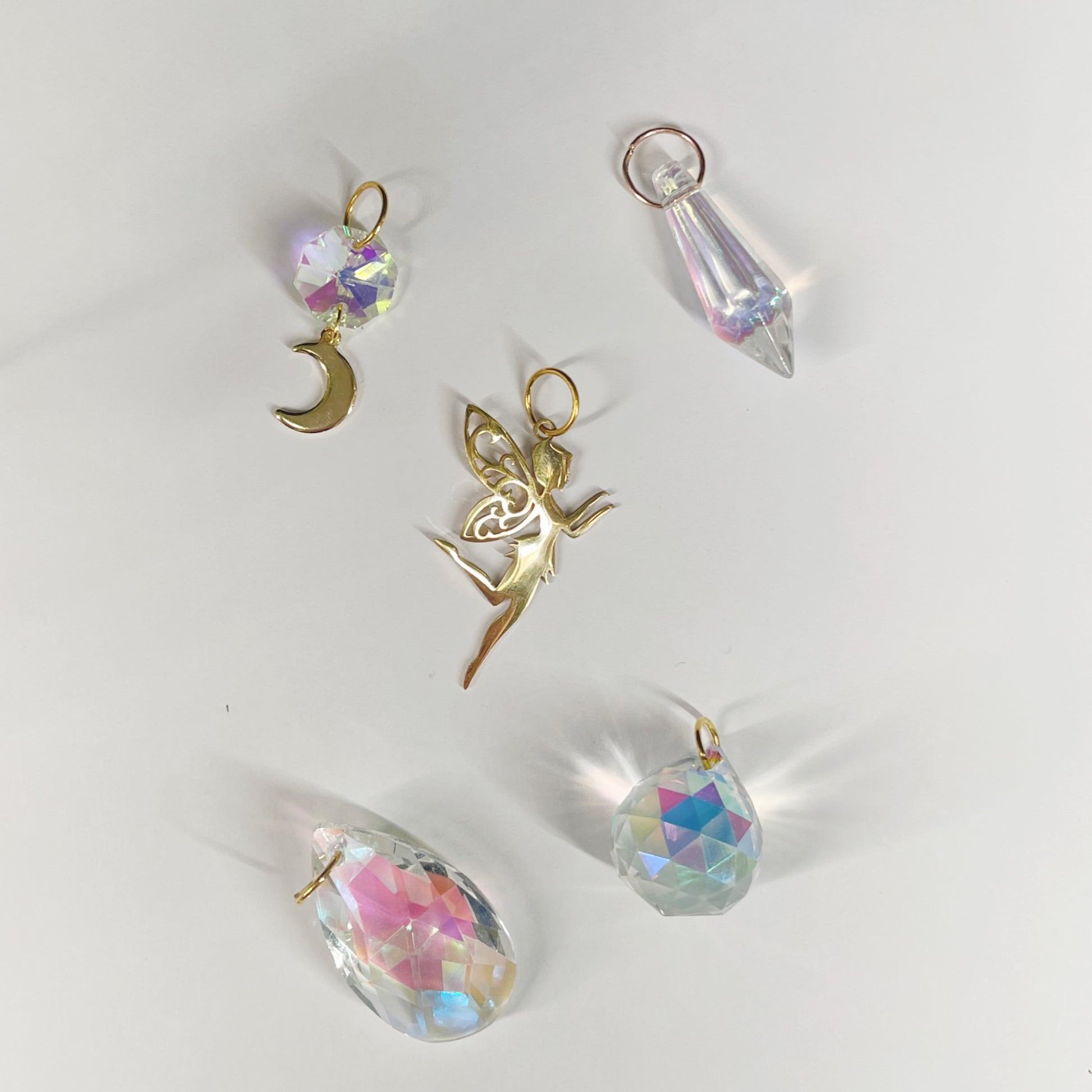 Charms are made from glass and gold tone metal. Multiple designs available, these items are handmade to order and can take up to a week to process and slightly vary in appearance from pictures.