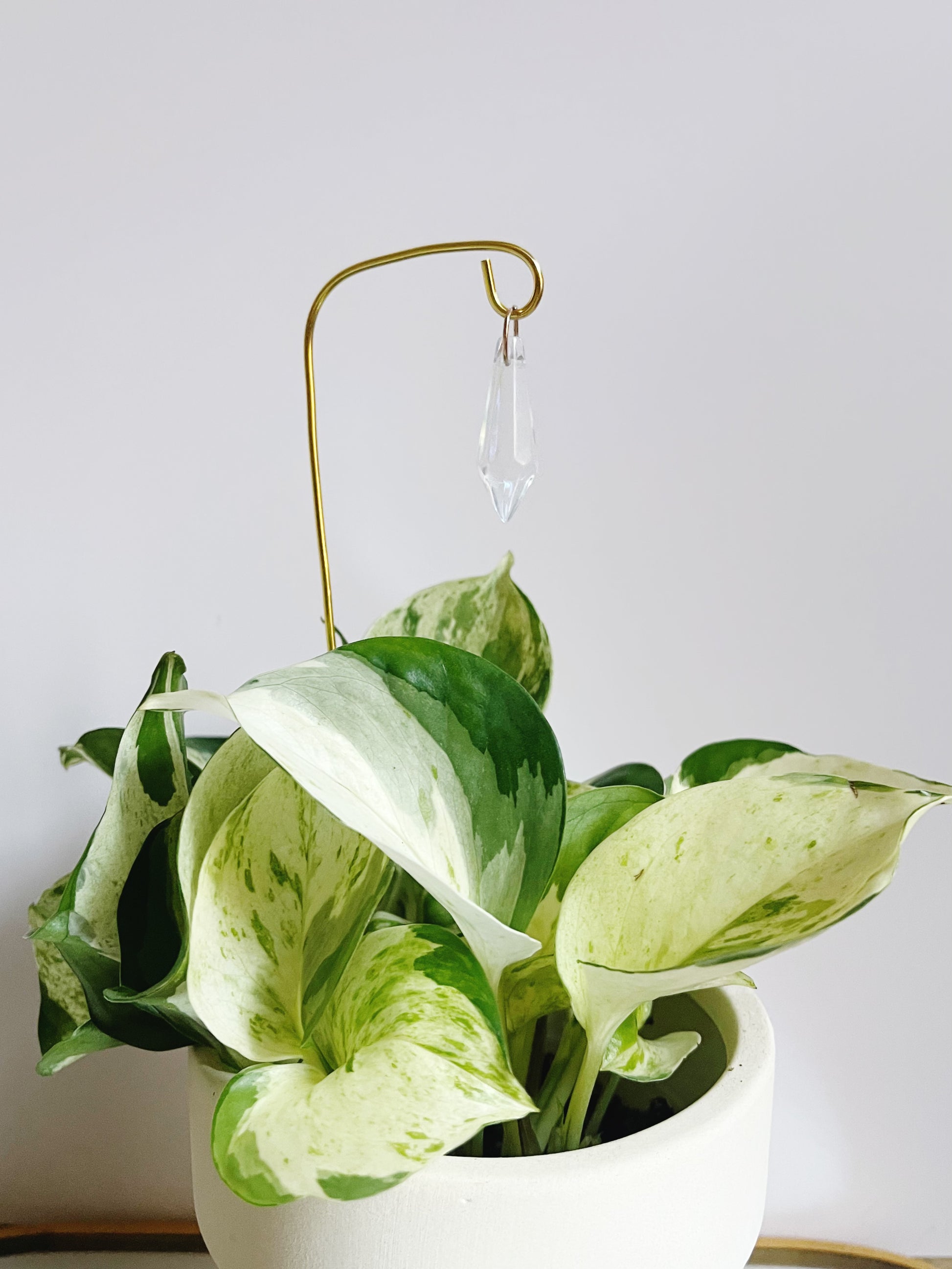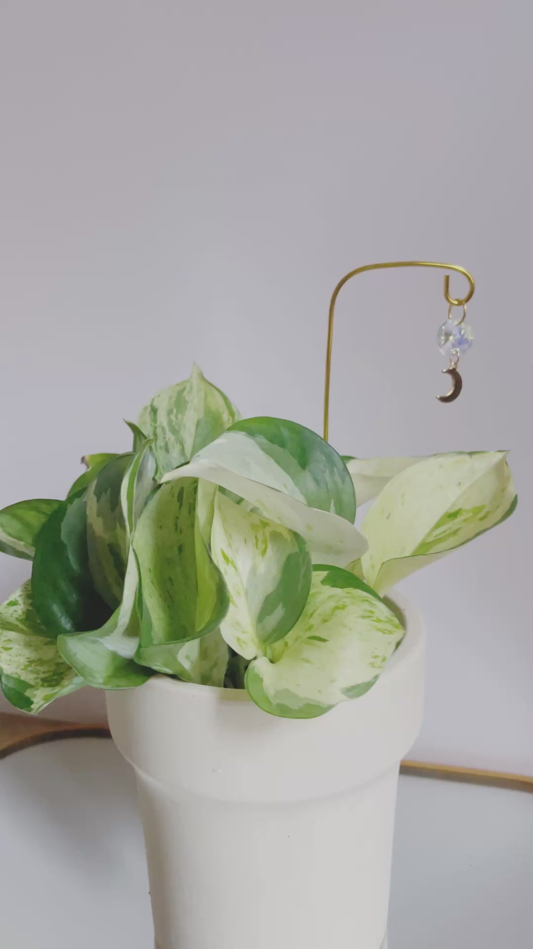 The stakes are available in multiple sizes, small are perfect for smaller plants and Hoyas and larger ones look great on hanging pots and bigger pots. Charms with crystals also act as sunchatchers and fill your space with rainbows!