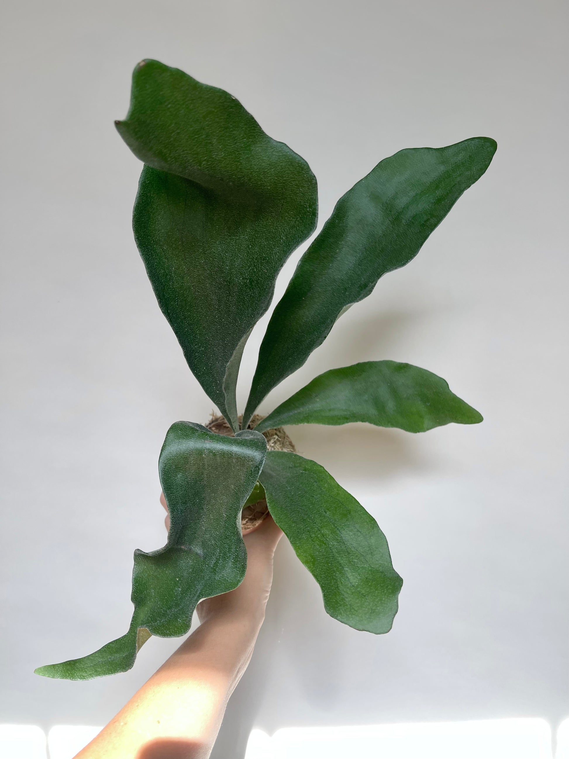 This is a beautiful Platycerium Bifurcatum with plenty of fronds grown with love in a small nursery. Staghorns can be mounted on a wooden board or in a wooden basket and becomes a great decorative piece. Platyceriums are easy to care for and grow happily in household environments.