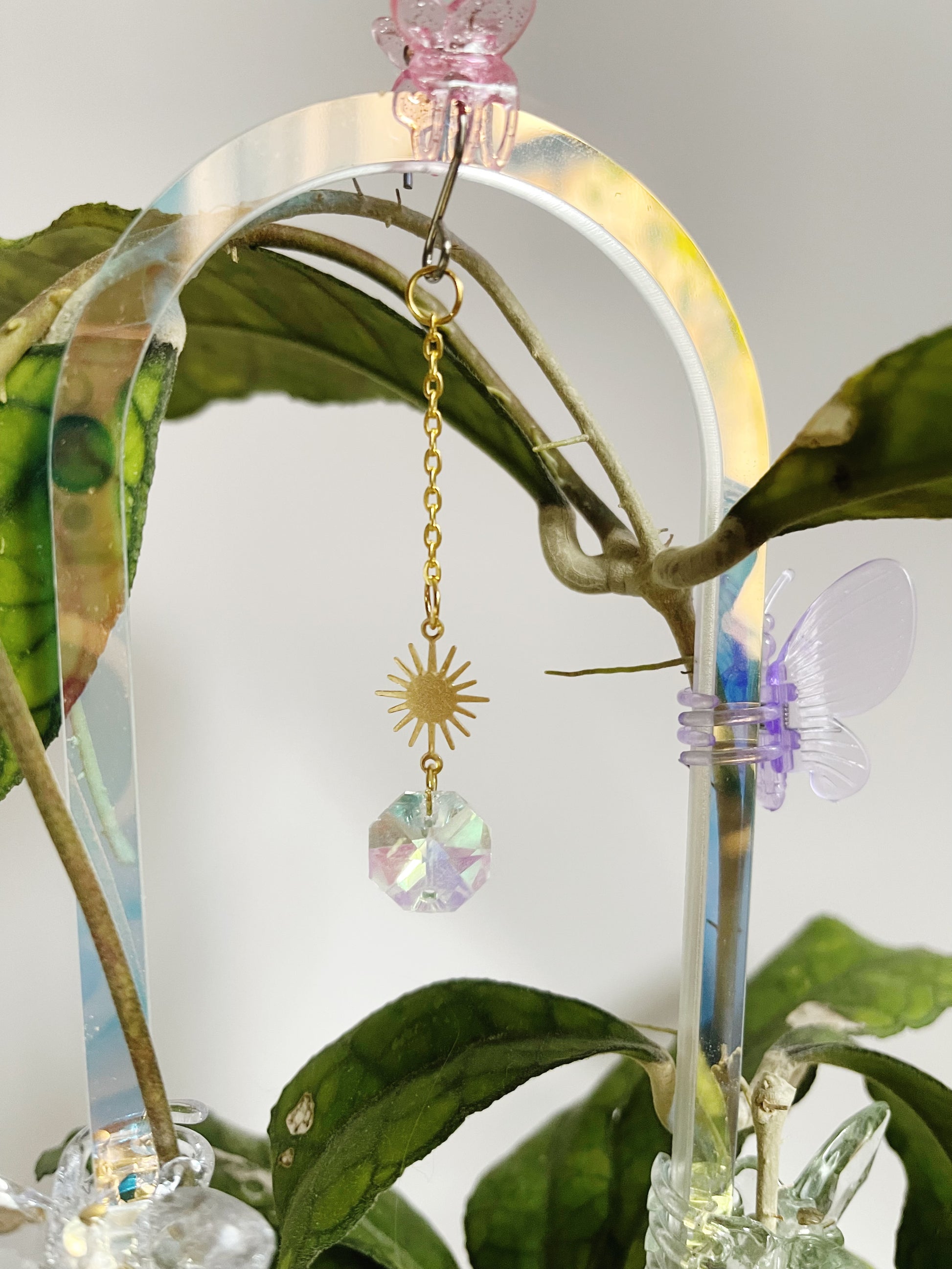 Trellis charms are made from gold tone metal and prism crystals that also works as suncatchers and fill your room with rainbows when exposed to direct sunlight.