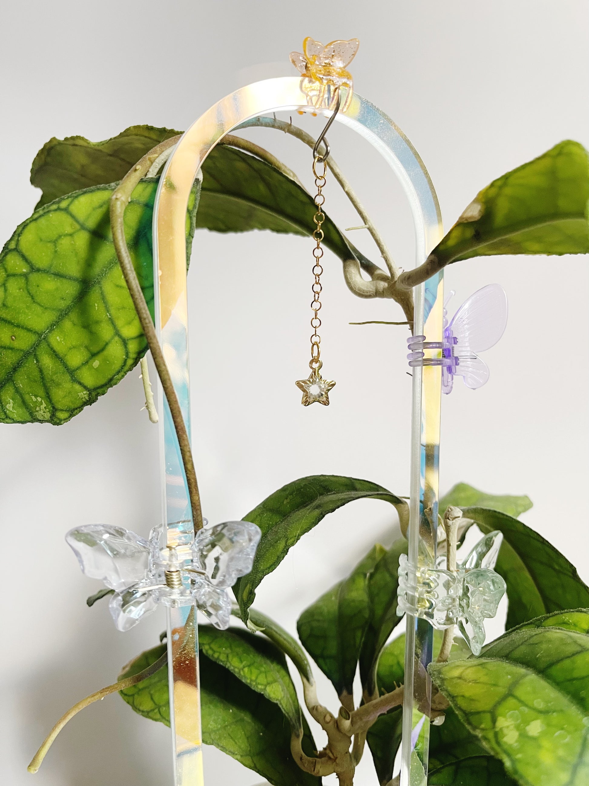 Charms are made from glass and gold tone metal. Each charm comes with a hook and a mini butterfly clip to help secure it on a trellis. Multiple designs available, made to order and can take up to a week to process.